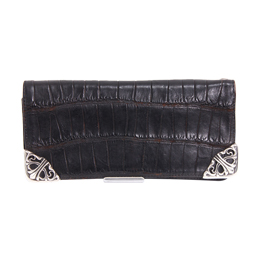 ワニ革の中でも最高級の品質であるといわれるのがアリゲーターレザーです。クロムハーツで使用されているレザーの中でもそれは決して例外ではなく、クロムハーツの数あるレザーの中でも、もっとも価格の高いレザーとして位置づけられています。アリゲーターレザーの特性上、使用されている革の場所により、目の細かさが全く異なり同じアイテムでも様々な表情を見せてくれます。またクロムハーツで使用されているアリゲーターレザーはカラーでも表情が異なります。オーソドックスなブラック、味わい深い色味のダークブラウン、クロコダイルでありながらさわやかな印象のホワイト。目の細かさとカラーの組み合わせで何通りもの表情を見せてくれるクロムハーツのアリゲーターレザー製品はまさに至高の一品と言えます。