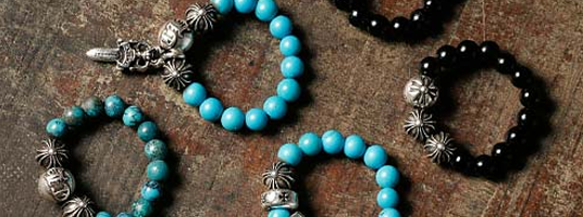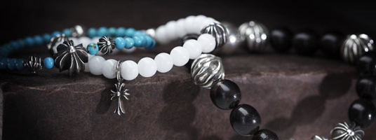 クロムハーツではシルバーやレザーなど、さまざまな素材を用いたブレスレットが展開されていますが、その中でも近年高い人気を集めているのが、ビーズブレスレットです。ビーズブレスレットとは、翡翠(ヒスイ)やターコイズなどの天然石を連ねたブレスレットのことで、性別年齢を問わず幅広く使えるアイテムです。ただし、ビーズブレスレットはゴムによって連結されているのが基本なので、定期的なゴムの交換が必要になるという点には気を付けなければいけません。ここでは、クロムハーツのビーズブレスレッドのゴムを交換する方法についてご説明します。
