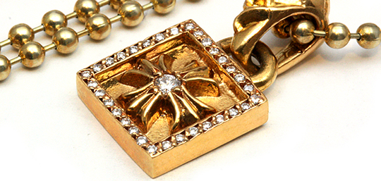 金を使ったクロムハーツアクセサリーを使用する場合、前提として覚えておきたいのは「K」の数が大きいほど純度が高く、その分柔らかくもろい可能性があるということです。また、貴金属類は丈夫なものだと思われがちですが、金はその中でも比較的壊れやすい素材であるため、取り扱いには十分注意しなければいけません。